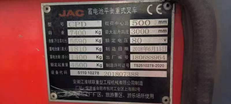 适用车型:主要适用于江淮 5 吨叉车,此外,还适用于吉鑫祥叉车 FB45 等车型。