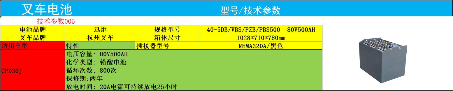 无论是制造业原材料转运,还是大型仓库货物装卸,杭州叉车蓄电池40-5PBS500都以稳定性能与适配性,成为CPD30叉车不可或缺的动力核心。