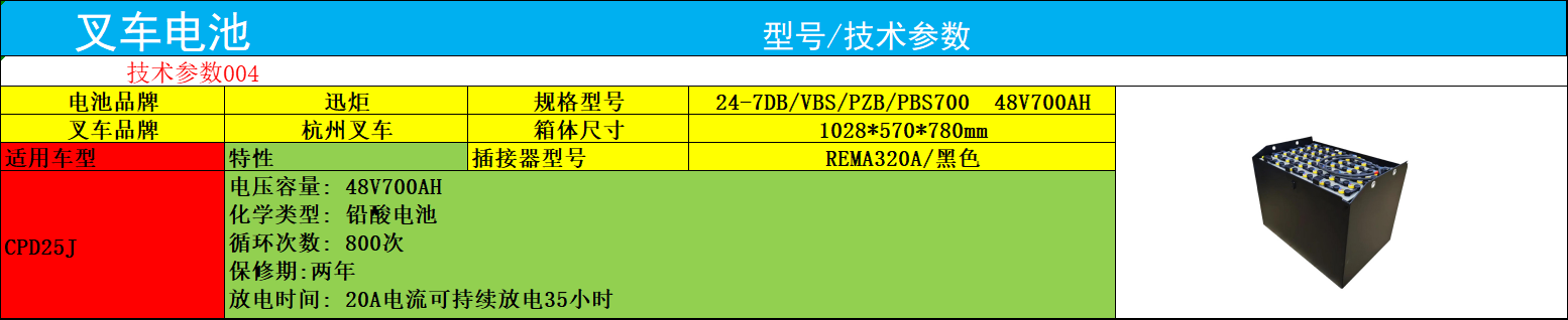无论是电商物流的货物周转,还是制造业的原材料搬运,杭州叉车蓄电池24-7PBS700都以其适配性强、性能可靠的特质,成为CPD25叉车不可或缺的动力核心。