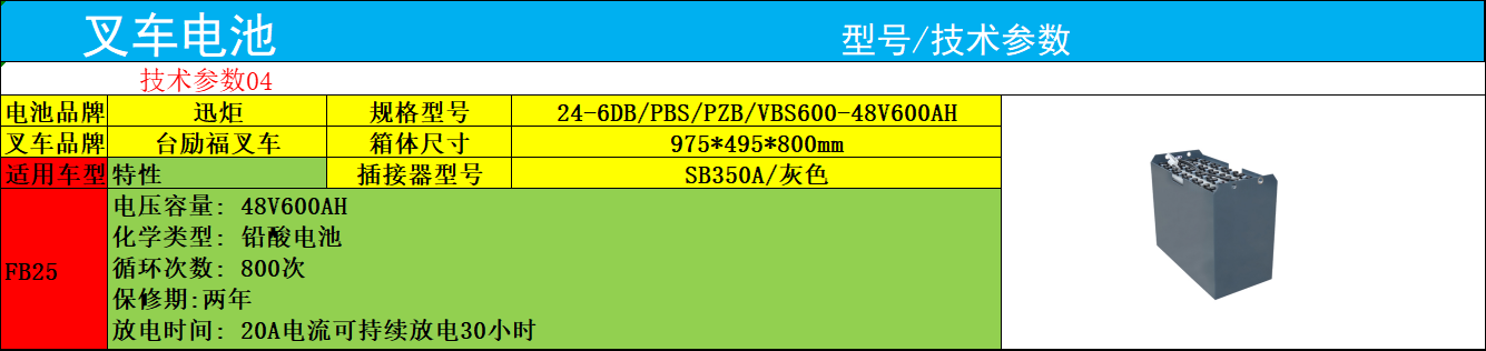 台励福叉车电池FB25 迅炬24-6PBS600原装电动叉车电池48V600AH规格表