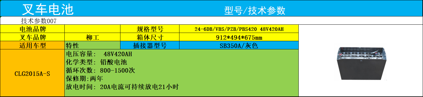 柳工仓储叉车电池CLG2015A-S 迅炬24-6PBS420物流叉车电池48V420AH规格柳工CLG2015A-S作为仓储物流场景的主力叉车,其专用仓储叉车电池与物流叉车电池核心型号为24-6PBS420,而专业电池品牌迅炬针对该车型量身打造的这款6PBS420电池,精准匹配48V420AH规格,完美适配叉车紧凑的动力舱布局,成为迅炬在仓储物流电源领域的经典适配方案。作为深耕场景化电池研发的品